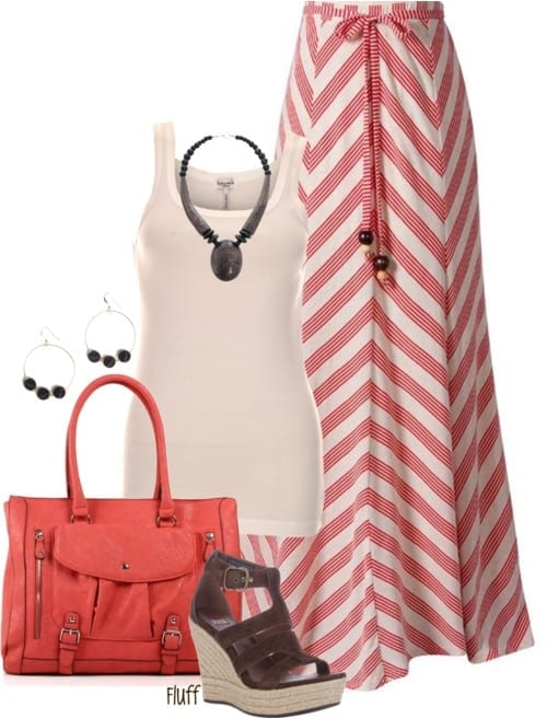 As you can see, tank tops go really well with maxi skirts and when you want to avoid the hem from dragging on the floor, try a fabulous pair of wedge sandals.