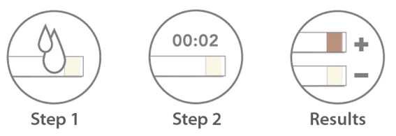 Simply saturate test pad with breast milk and read results in 2 minutes. ANY color change on the test