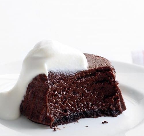 These little cakes resemble molten chocolate cakes, but are actually cheesecakes. The dessert may seem rich, but it’s made with nonfat cottage cheese instead of cream cheese. Bake them in a muffin tin and let them set in the fridge before turning out onto plates.