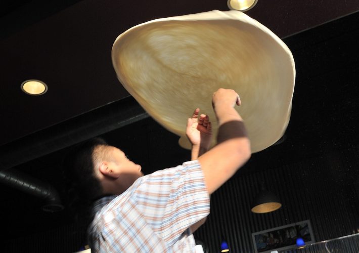 Seven inch pizza crust rolled out on Papa Murphy’s signature bake ‘n’ serve tray