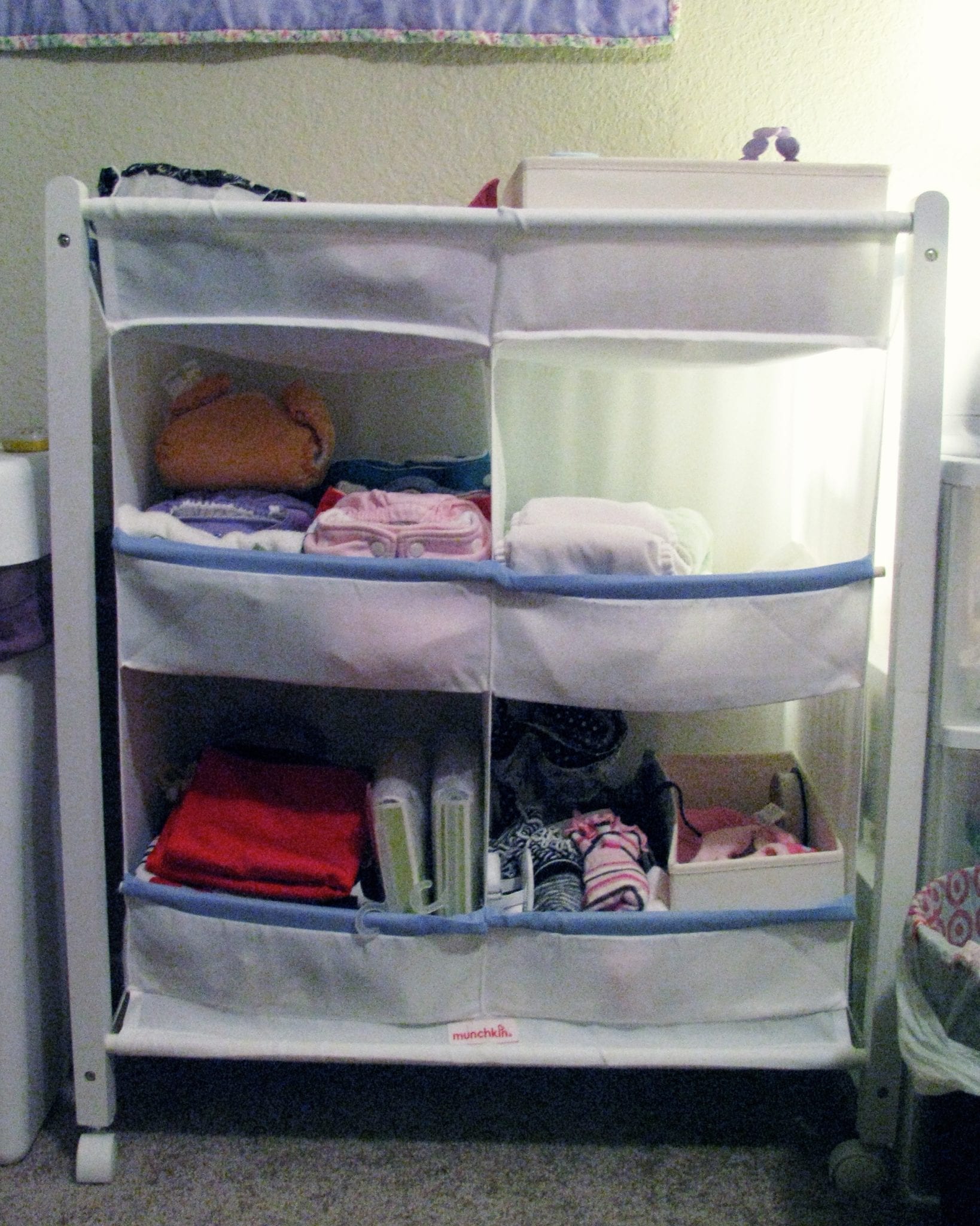 It seems like baby’s come with a lot of stuff. Blankets, wraps, carriers, diapers, clothes and more gadgets than you can keep track of. When I was trying to organize my daughter’s room before she came, I wound up with a lot of little extras and no where to put them! Not to mention, I decided to cloth diaper her, and I needed somewhere to put all those diapers.