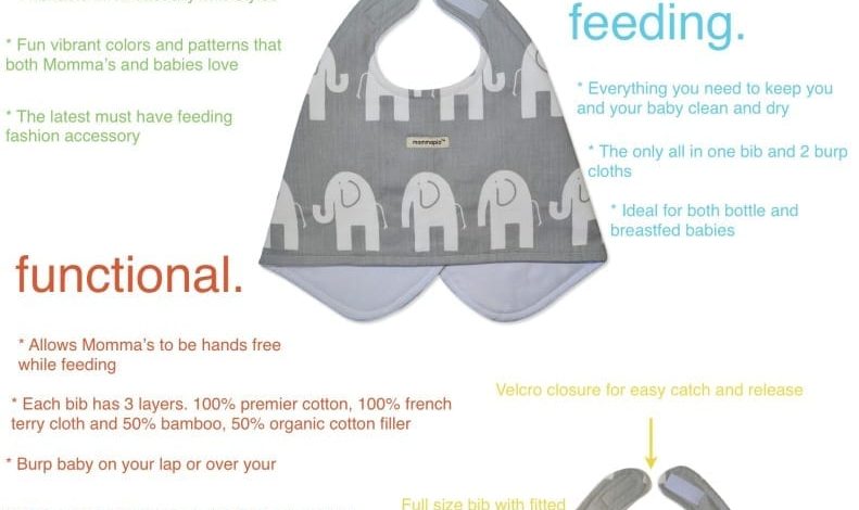 The Bib n Burp offers moms a bib & two burp cloths in one simple, fashionable & functional design. It is a mom created product that solves the problem of juggling all the separates by having everything you need to feed you baby in one product.