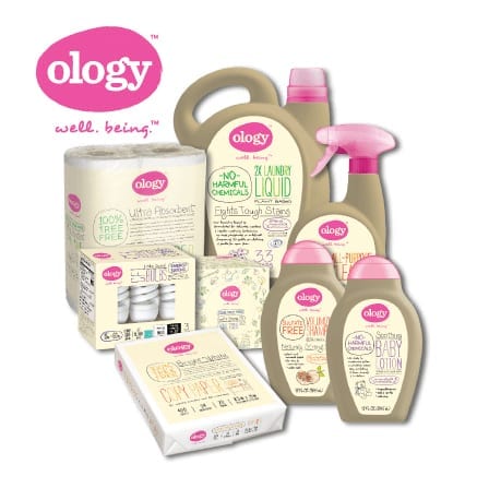 Ology brand products also include light bulbs and paper products that are 100 percent tree-free and made from readily renewable resources.