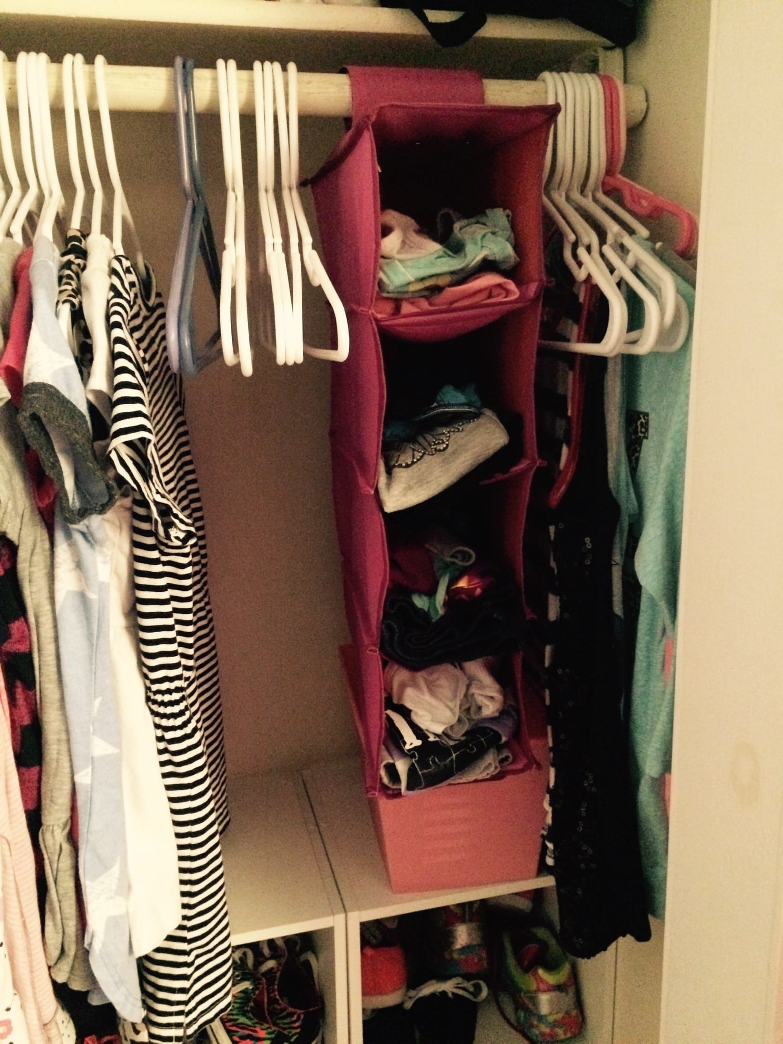 My daughter is at that age where she’s really opinionated about what she wears to school. These opinions sometimes throw a wrench in morning routine so we’ve started something new. Every Sunday night, we go through some outfits and pick out 5 for the week. From there, I get the socks, headbands, etc. together. I then place each outfit in this hanging shoe organizer in her closet. She then gets to pick her outfit each day from the organizer and it eliminates any outfit mishaps. This is the second week doing this and it works so good for us.