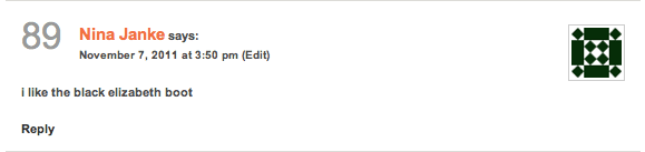 14 years agoI like the black Elizabeth Boot. My toddler would be sylin’ in these. ;)