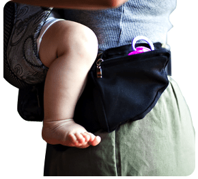 Each Pognae Baby Carrier comes with an attachable pouch of matching style and is ideal for carrying your personal belongings. The pouch slides easily over the waist band and sits on your hip so you can have easy access to your essentials while carrying your baby.