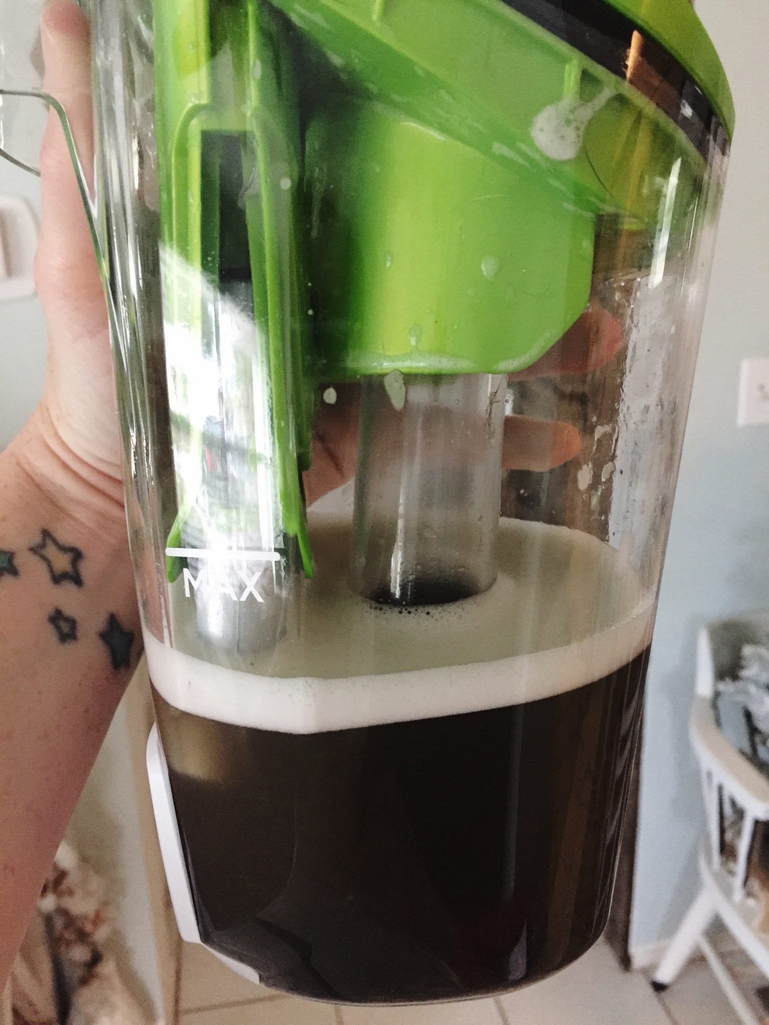 Below, you can see the filthy water (I can’t believe I’m showing you this!) that it sucked out of my floors and a small part of my rug.
