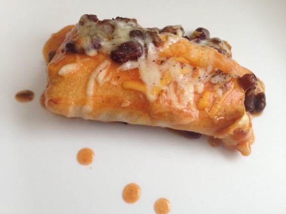 Basically, you just take your left-over chili (or make a quick pot of it) and grab the tortillas, cheese & enchilada sauce. That’s it! You can add other things if you like, I know some people who add olives to their enchiladas or jalape os.