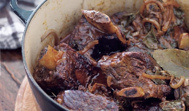 Add the vinegar, wine, tomato paste, onion, garlic, parsley sprigs and bay leaves to the cooker and stir to combine. Cover and cook on low for 4 to 6 hours according to the manufacturer’s instructions. Uncover the cooker after 4 hours and check one of the thickest ribs; the meat should be very tender and falling off the bone. If not, re-cover and continue cooking, checking again about every 30 minutes.