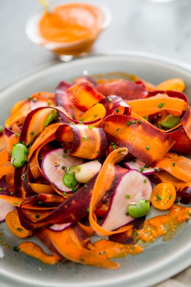 FEATURED Everyday Food & Drink Healthy Recipes Rainbow Of Carrots Salad with Roasted Red Pepper Vinaigrette by Modern Day Moms on October 13, 2014 FEATURED This radiant recipe combines ingredients of various textures and colors, ranging from deep orange to purple… Read More