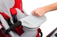 The G2 has a few extra things that the competition just doesn’t have, and if you want to pay good money for a good stroller then you want to get the most out of it. It comes with a snack tray that easily snaps on and off of the support bar!