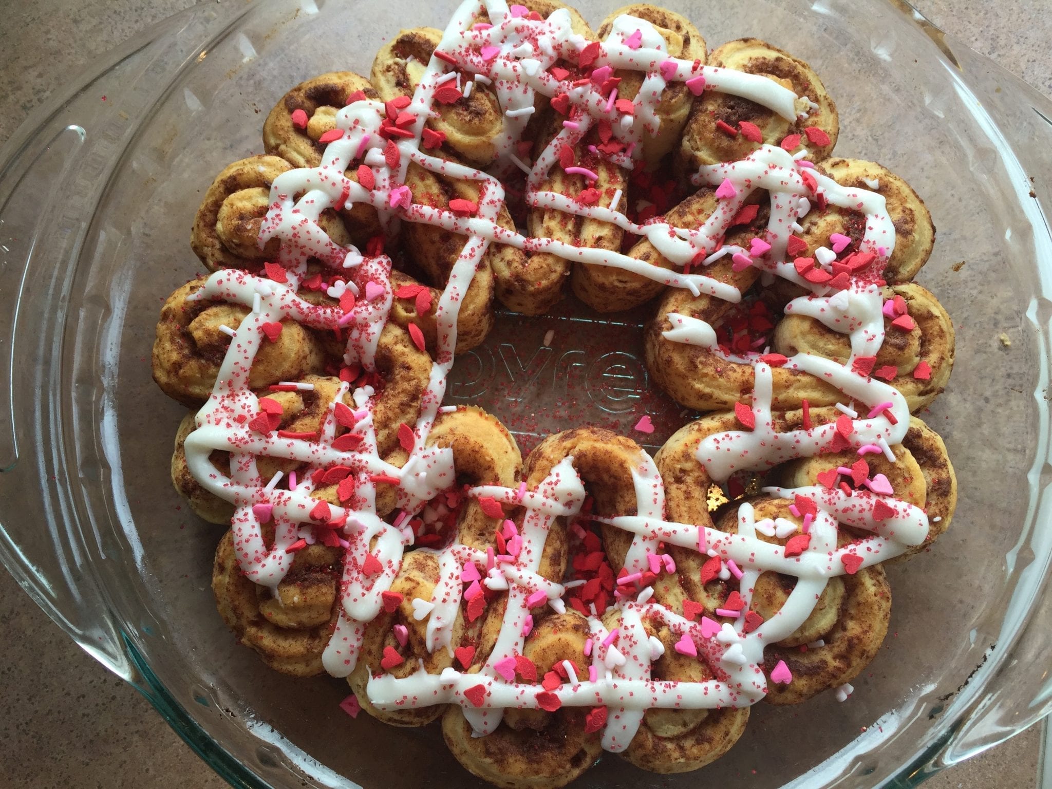 - Seperate into rolls and form into a heart shape. This is done by basically unrolling the form the rolls are packaged and shaping into the heart. Don’t fret too much over this part. They will look cute no matter what!