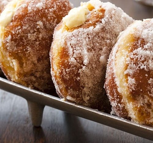 Poke a hole in the side of each cooled doughnut and fill with about 1/3 cup filling; serve immediately.