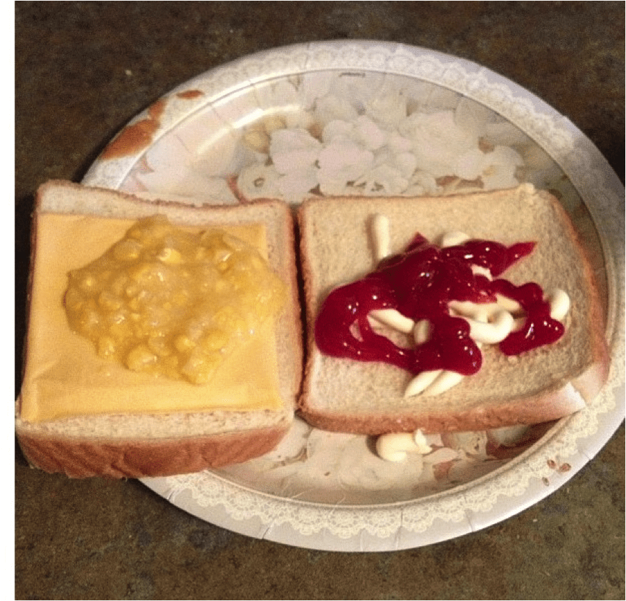 She glanced back at me very matter of factly; “cheese, we need cheese.” A slice of processed cheese upon request to a little girl who was becoming quite pleased with her masterful creation. “Is that all?” I blurted out, almost closing the sandwich for her to stop the madness. “One more thing” she added, as if ketchup, mayonnaise and cheese didn’t already make the perfect “peanut butter and jelly sandwich”. “Do we have any creamed corn?”