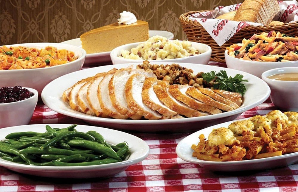 Buca Di Beppo is known for its family-style meals, so it’s no surprise their Thanksgiving Feasts really feeds a crowd! You can buy a half-pan that serves 10 for $200, or a full pan that serves 20 for $380. Feasts include sliced white meat turkey, mashed potatoes and gravy, spicy Italian sausage stuffing, green beans, bread, cranberry sauce, and pumpkin pie. Make sure to place an order by 4 p.m. on November 21 to get your meal ready in time!