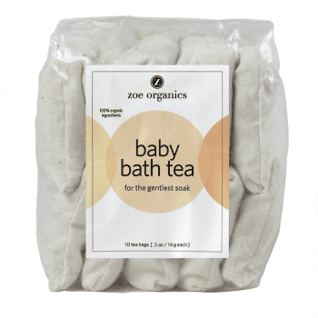 We also loved the massage oil and the bath tea. The tea comes in muslin bags that you just toss in the bath water. Give the bag a squeeze and a squish and you’ll have a nice oatmeal tea type bath! This stuff also helps with eczema, I noticed. And, hey, not gonna lie. I tried it in my bath too! My skin was soft and the bath smelled great! My only request to Zoe? I wonder if they could make a giant bag of the tea stuff, and then give us some reusable muslin bags. Less garbage! The bag is small though, so really it’s not a big deal. The massage oil is nice and light – not heavy feeling. It absorbs nicely into the skin and leaves a nice calming scent. This would be great for moms with newborns. Baby massage is relaxing not just for baby, but for mom too.